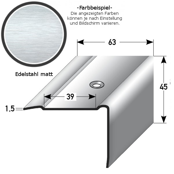- GRÖSSE: Das Winkelprofil mit den Abmessungen 63 x 25 x 1000 mm schafft einen sauberen Abschluss an der Treppenkante. Das Treppenprofil hat eine Materialstärke von 1.5